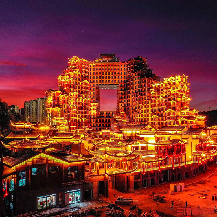 它將獨特的土家族建筑奇觀與現(xiàn)代光影科技(如全息投影、互動燈光秀)完美結合,打造出極具沉浸感的夜間文化體驗場景,并通過引入豐富的地方非遺展示、特色美食集市與沉浸式演藝活動,成功激活區(qū)域夜游經(jīng)濟,為游客提供了傳統(tǒng)與現(xiàn)代交織的全新文旅樣本,引領了沉浸式文化夜游的新風潮。