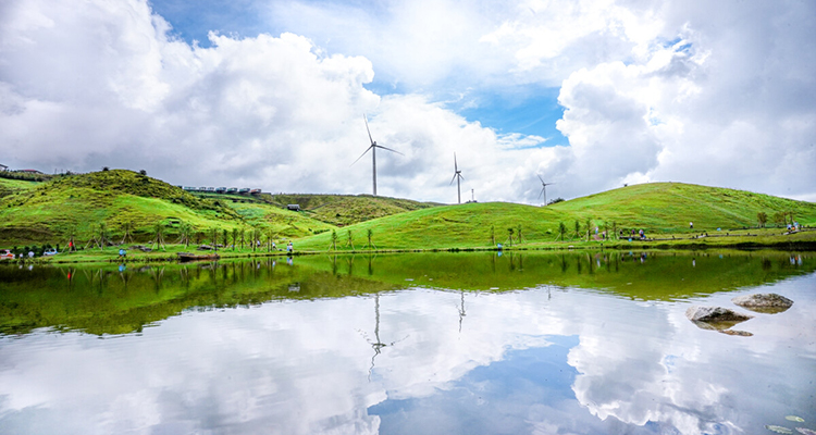 1、仰天湖:作為景區(qū)核心,它是第四紀(jì)冰川期形成的火山口湖泊,面積達(dá) 20 余畝。湖水澄澈,倒映著周邊連綿的風(fēng)車和廣袤的草原,宛如一面巨大的鏡子鑲嵌在高山之上。清晨時(shí)分,常有云霧繚繞,如夢似幻,仿佛人間仙境。湖邊是絕佳的野餐地點(diǎn),鋪上餐布,享受美食的同時(shí),還能將湖光山色盡收眼底。