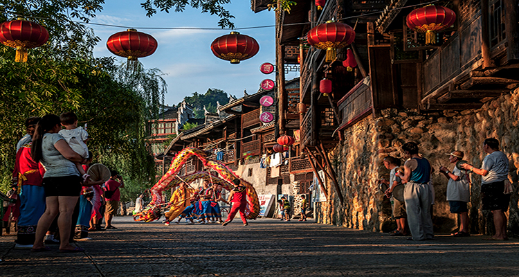 ──瑤族團圓節(jié),是為紀念瑤族先祖六男六女受封婚配,團圓成親之日。每年的農(nóng)歷七月十五日,瑤人殺牲慶賀,喜氣洋洋。入夜,敲鑼打鼓,到村外燃燒篝火,舞動火龍火獅,圍堂歌舞,直到深夜甚至通宵達旦。