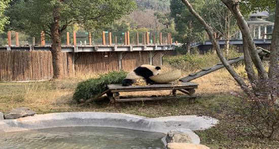 大熊貓館是步行區(qū)的標(biāo)志性建筑之一,場館面積370平方米,有室內(nèi)場館和室外活動場兩部分組成。一條長橋穿行于室外活動場,人行其中可更接近我們的國寶大熊貓。園內(nèi)有2只從四川成都熊貓基地引進(jìn)的亞成體大熊貓“貝貝”和“雙雙”。在大熊貓室內(nèi)展館設(shè)有大熊貓紀(jì)念品專賣商店。游客可以將做工精美的熊貓玩具、文具等紀(jì)念品帶回家。