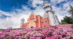 愛情谷,這里可以看到瑞士大鐘塔和歐洲小鎮(zhèn),處處都是典型的歐式建筑。右邊的丹麥國王加冕城堡,是個明星夢工廠和恐怖城。與它相鄰的那座綠頂紅墻的建筑是荷蘭海牙國際法院,內(nèi)部是一個世界蝴蝶博覽館,在那里可以免費欣賞到各種精美的蝴蝶標本。左邊的湖水叫天鵝湖,取名于俄國作曲家柴可夫斯基的同名舞劇《天鵝湖》,湖邊那三座高大的風車是荷蘭的象征。右邊地上的泉眼是旱噴泉,在旱噴泉上方的建筑是意大利圣三山教堂,它與原型比例是1:1.5,每年都有許多對新人在這里舉行西式婚禮。這里還有一個歐洲小鎮(zhèn)仿建的是德國和法國民居,比例為1:1的歐式風格,被開放成商場和服裝出租點。